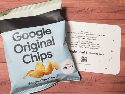 そんなPixel 6とPixel 6 Proの正式発表を前にグーグル(以下、Google Japan)が自分の名前(任意)が印刷された世界で1つだけのオリジナルポテトチップスがもらえる「Google Original Chips キャンペーン」( http://g.co/pixeljp )が行われていました。