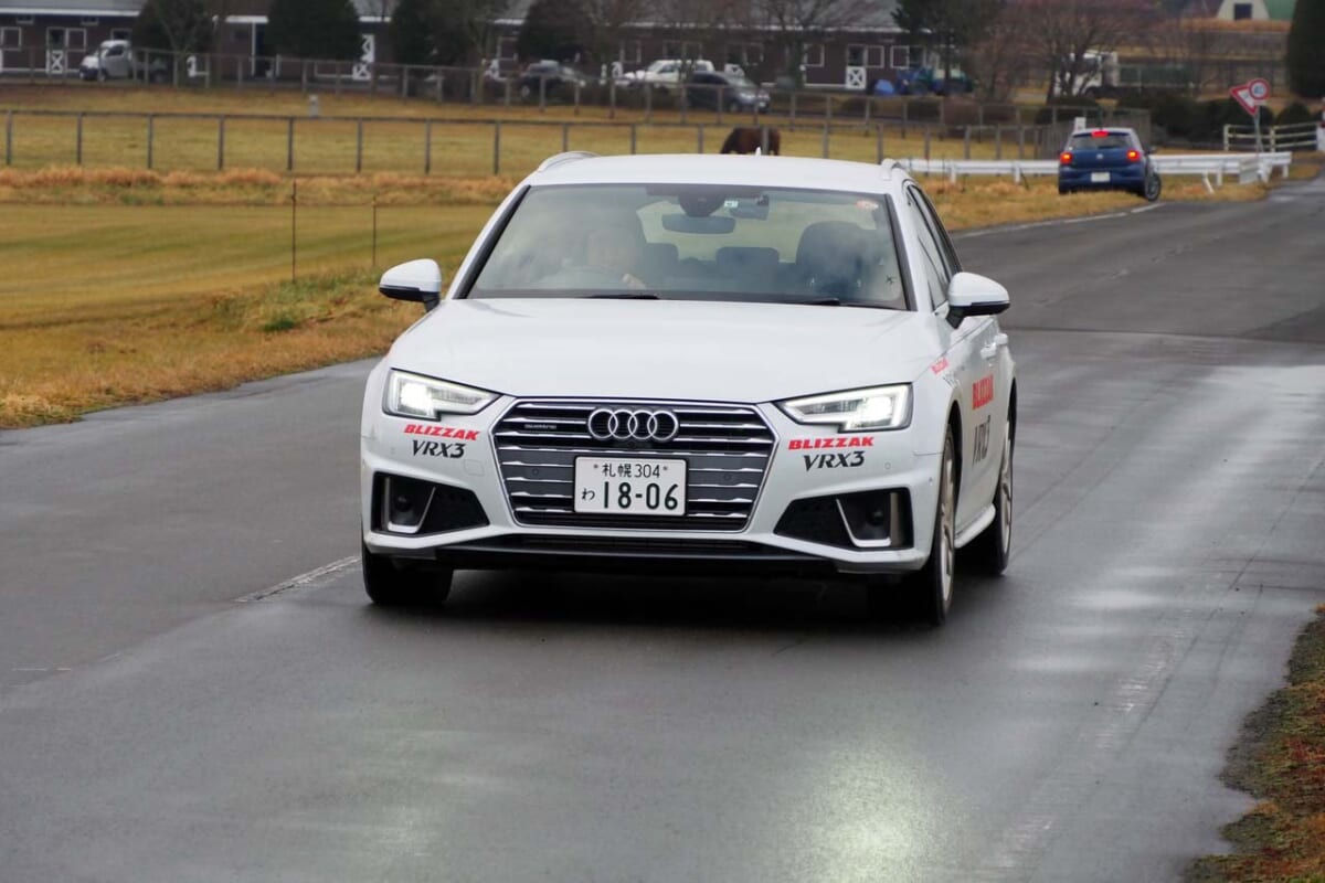 オンロードでの試乗はフォルクスワーゲン「ポロ」とアウディ「A4アバント」の2台。ポロはFFで185/65R15サイズを、A4アバントは4WDで245/40R18サイズを装着していました。