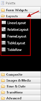 Kita bahas satu persatu. Pada panah merah (LinearLayout) itu merupakan code untuk alas atau dasar atau istilahnya canvas tempat kita mau melukis. Untuk tipe/model dari kanvas ini anda bisa melihat pada main.xml layout pilih Graphical Layout seperti ditunjukkan kotak merah pada gambar dibawah :