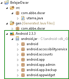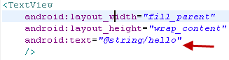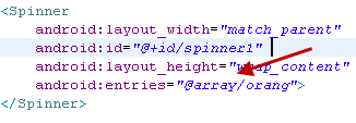 wrap_parent(area objek menyesuaikan bentuk objek). Selanjutnya pada class andorid:text yang ditunjuk panah merah seperti gambar dibawah: