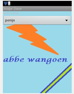 Sabar, tinggal satu langkah lagi yang harus kita lakukan, yaitu kembali ke main.xml dan ketik code seperti pada kotak hijau gambar dibawah :