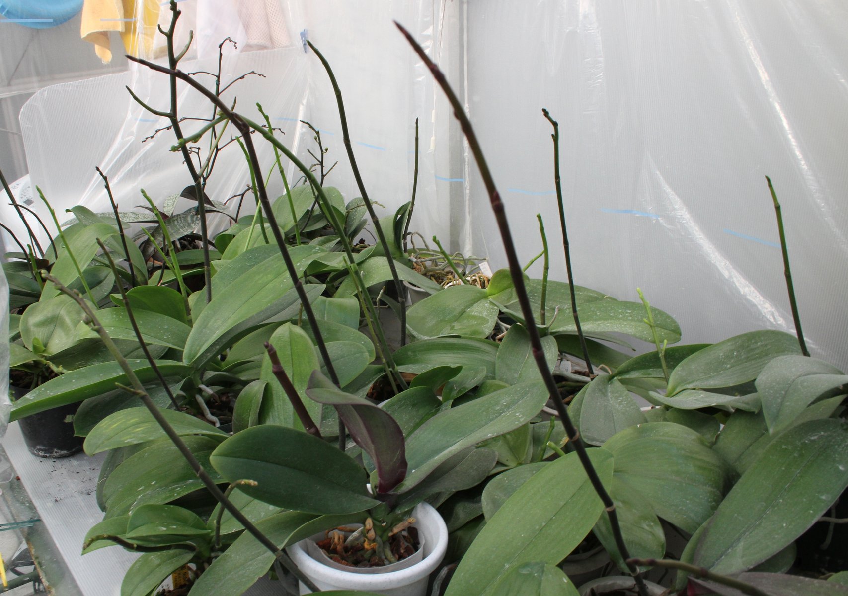 他の胡蝶蘭は順調です。 正しくは順調に行っている様に見えます。 この中にももうすでに病気が進行している株もあるかもしれませんが。 定期的に消毒するのが一番いいのでしょうね。