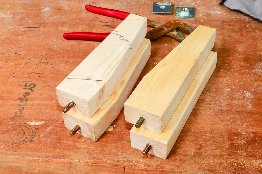 製作のポイント3/ボルトをねじ込み、脚パーツを作る