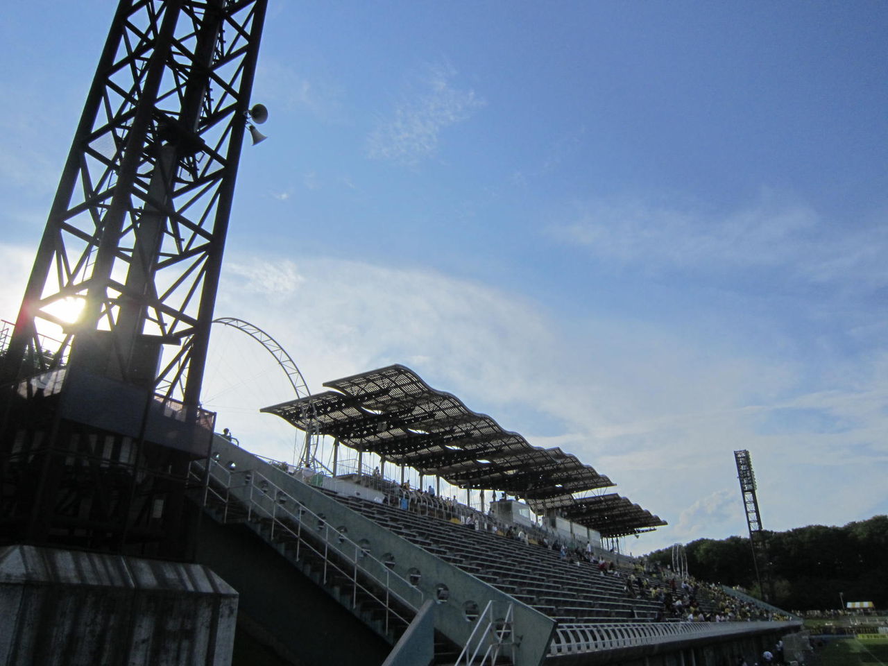 餃子を食べて駅前から出てるシャトルバス(無料)に乗り グリスタのおトイレ、昔訪れた時は雨漏りしてました、 だけどもあの時のまんまの形状に一安心、 しかし宇宙船のコックピットみたい?。 もちろんスルー。栃の葉カクテル、頂きました。(ハーフタイムには既に完売) 屋根は相変わらず・・・一部のみ森の中に有るスタジアム(実は工業団地に有るスタジアム)今夜中には続編が有るかと思う・・・、 少し飲んじゃいましたので・・・。
