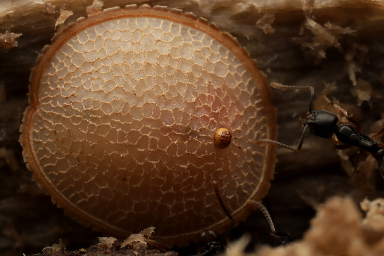 オオハリアリが抜け殻の中に入っていて、部屋の一部として使われているような感じでした。