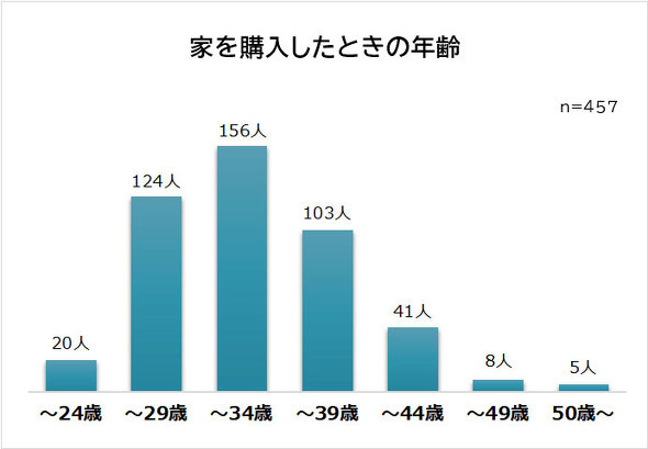 家を購入した時の平均年齢は32.3歳だった。最年少は20歳の男性で、結婚がきっかけだったという。