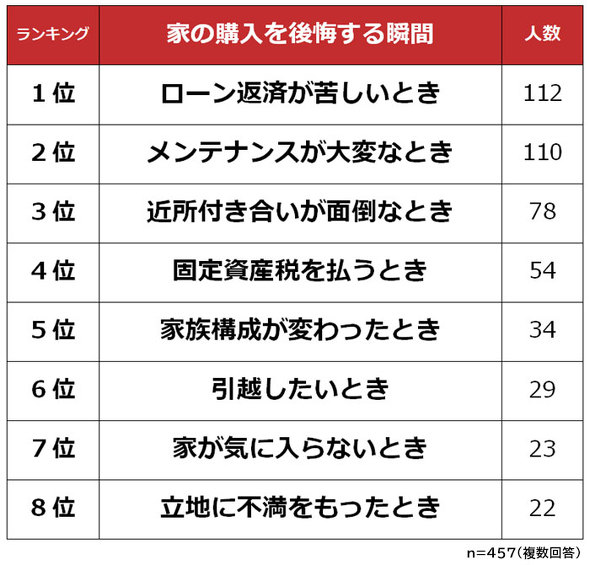 《家を買ったことを後悔した瞬間ランキング(出所:リリース、以下同)》