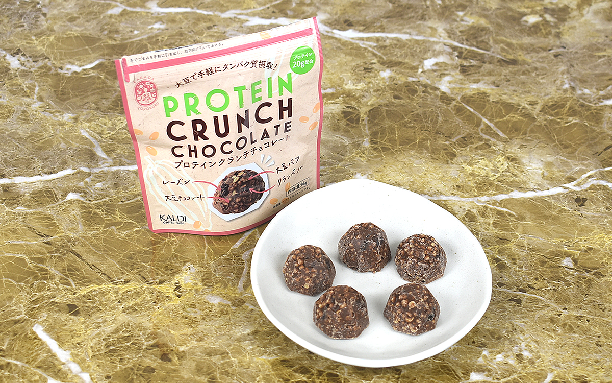 ●「カラダよろこぶプロテインクランチチョコレート 56g」(カルディ)