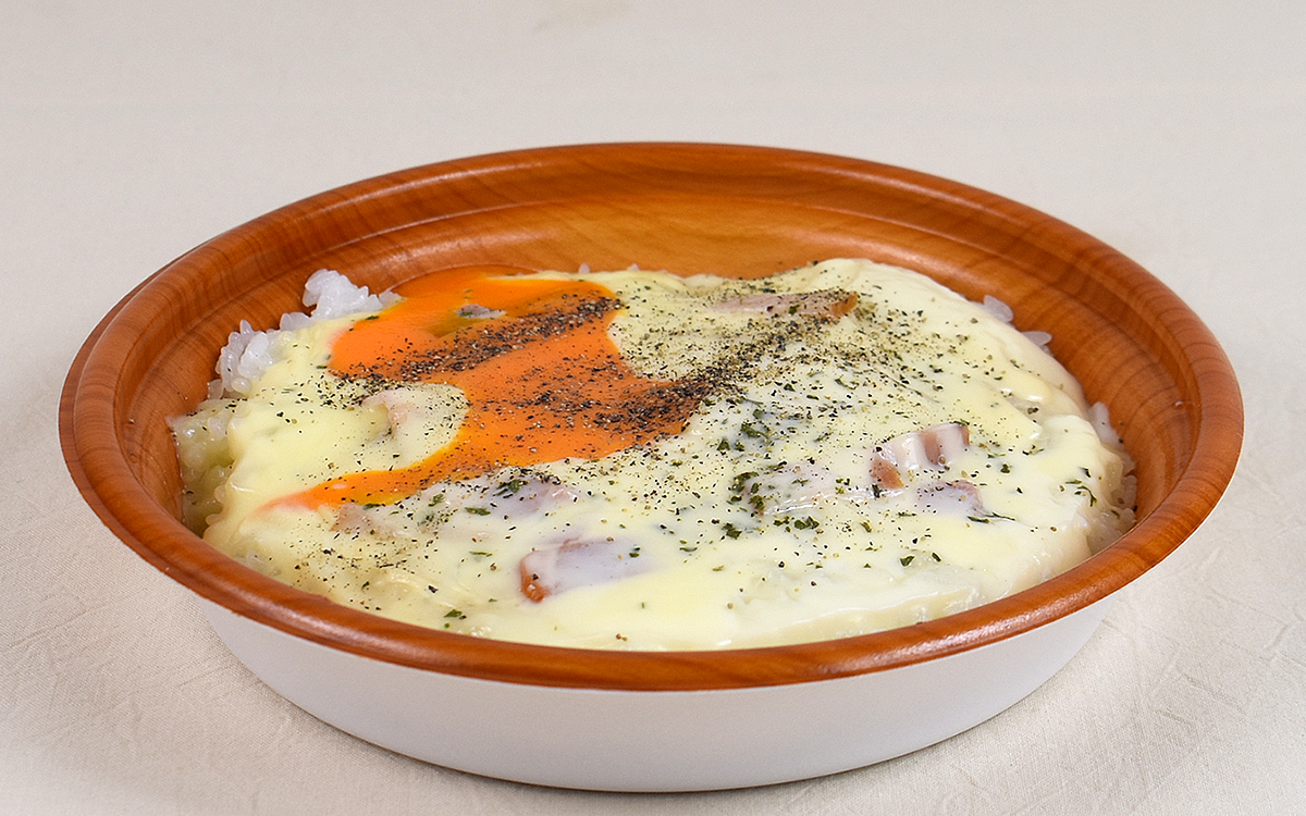 カルボナーラに欠かせないベーコンの旨味もいい仕事をしていて、チーズやホワイトソースとの相性はさすがの一言。また卵黄を混ぜていただくとホワイトソースのコクに深みが増し、チーズの酸味を抑えて一層まろやかな味わいに。もちろんライスとの食べ合わせもパスタに負けないくらいよく、カルボナーラならではの風味を存分に楽しませてくれました。