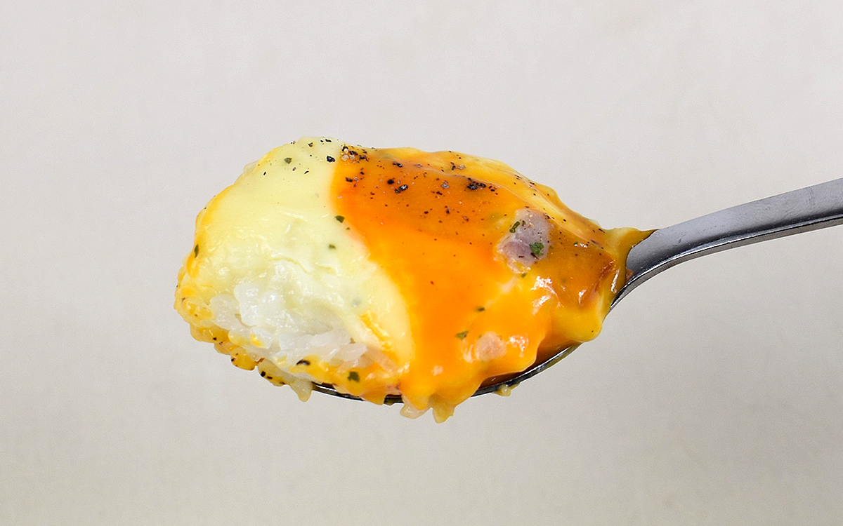 購入直後のチーズは固まっている状態ですが、電子レンジで加熱(500Wで3分)したところチーズがとけてホワイトソースを覆うことに。立ち上がってくるチーズの香りもさることながら、スプーンで口に運んだ具材からあふれ出る濃厚な味わいもたまりません。
