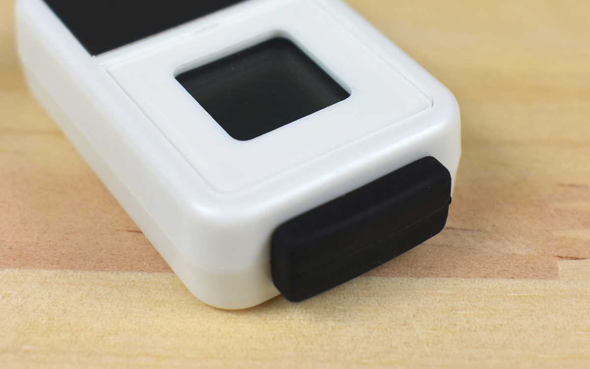 静電気除去アイテムといえば、スティック型やブレスレットタイプなど形状は様々。同商品の場合は約45(幅)×13(奥行)×30mm(高さ)の小さな箱型で、従来品には見られない液晶表示部を実装しているのが特徴です。他に導電ゴムや銀色のプレートも備えていますが、重量は約13gしかありません。