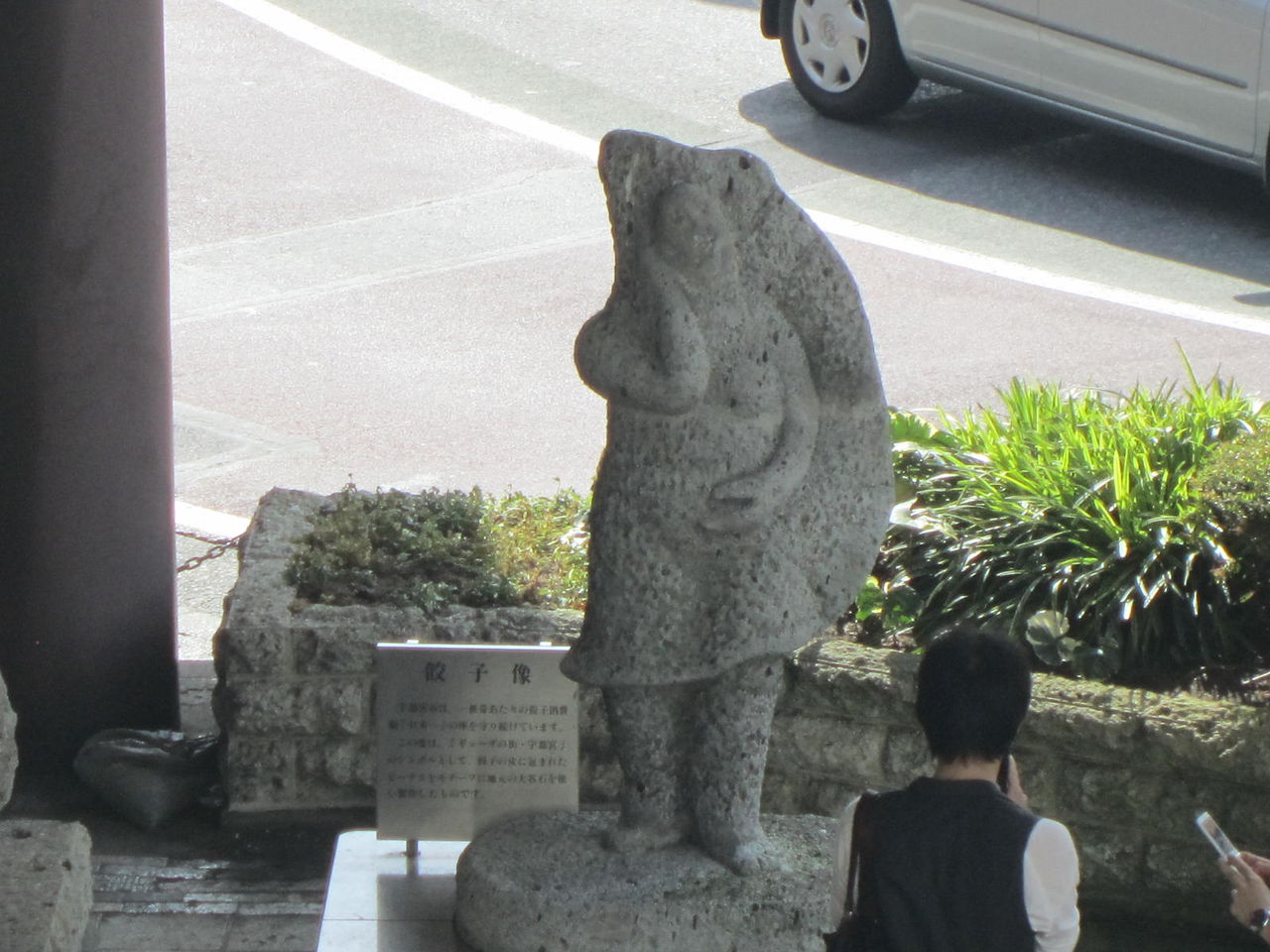 「餃子像」はひっそりとバスターミナルの端っこに有ります