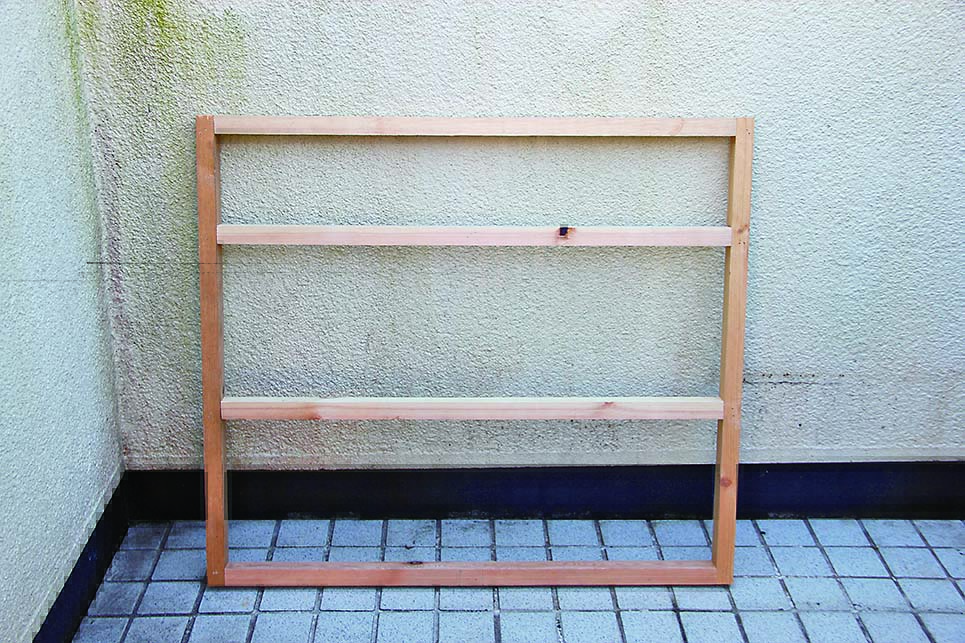 少しだけ骨組みを追加して、その上に合板を載せれば棚ができる。収納物のサイズや数にぴったりの棚を設置して、収納効率を高めよう。