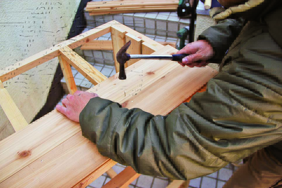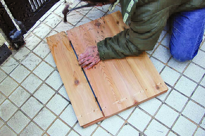 羽目板をスクリュークギで張る
