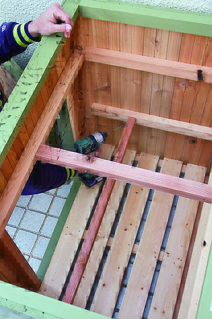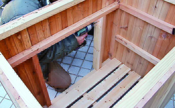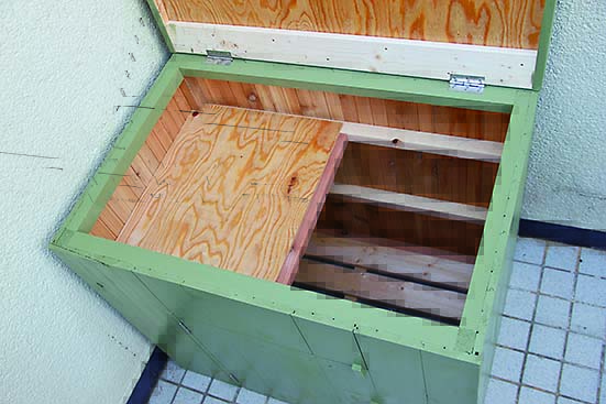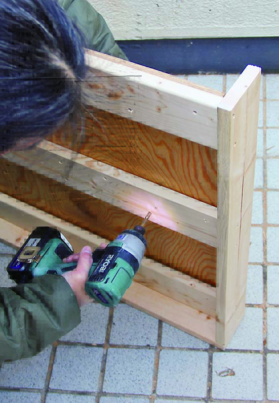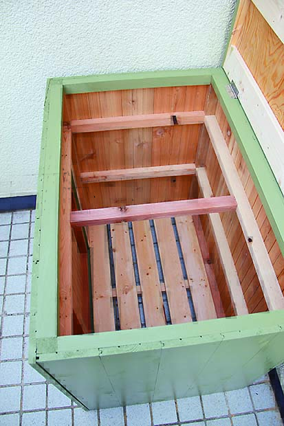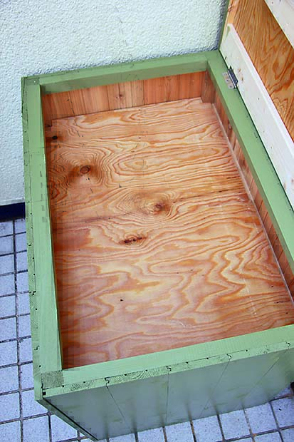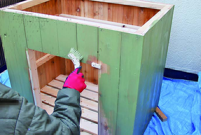 シンプルなボックス形だから、カラーリングで雰囲気はがらりと変わるだろう。今回は男っぽくミリタリー風に仕上げてみたが、例えば白系のエイジング塗装ならナチュラルガーデンに合うし、原色でカラフルに仕上げればキッズの遊具収納にぴったりになるはず。