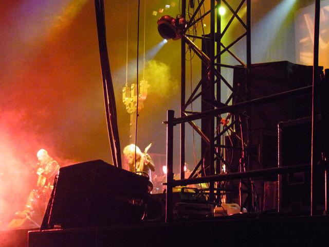 左:”NIght Crawler”の時、JUDAS PRIESTの巨大な”Ψ” がステージに登場!