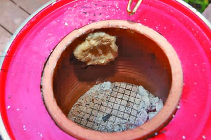 タンドール窯とは円筒形の粘土製壺型オーブン。北インドからアフガニスタンなど西アジアから中東にかけて使用されている土窯だ。その起源は古く古代インダス文明まで遡るといわれている。インド料理屋に行くとナンを焼いている筒状の窯がありますよね、アレです、アレ。