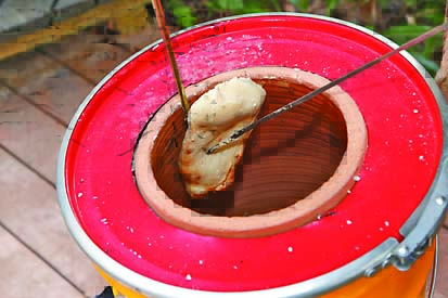 自宅の庭で気分はインド!タンドール窯で串焼きパーティー開催中
