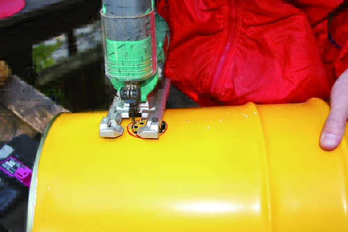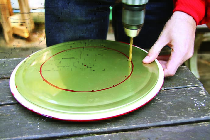 ペール缶のフタを丸く切り抜く