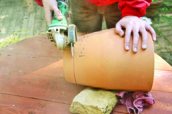 素焼きの鉢をカットする