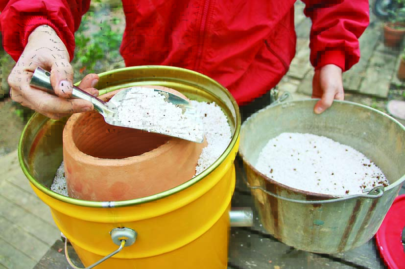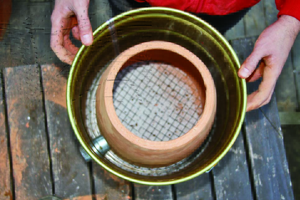 というわけで、「なければ自分で作る」んである。とはいえ、本場のタンドール窯は総重量60kg以上にもなるという。これはいけない。「いつでも、どこでも」というテーマから大きく外れるし、常日頃心掛けているウルトラライトの思想に反する(僕は山男でもあるのだ)。車での移動はもちろん、手持ちで持ち運べることを想定すると、目指す重さは10kg以下。さらには、友人に自慢できるようなかっちょいい見た目にもこだわりたい……そこで用意したのがペール缶とテラコッタの素焼き鉢、そしてオリジナルミックスの断熱材。