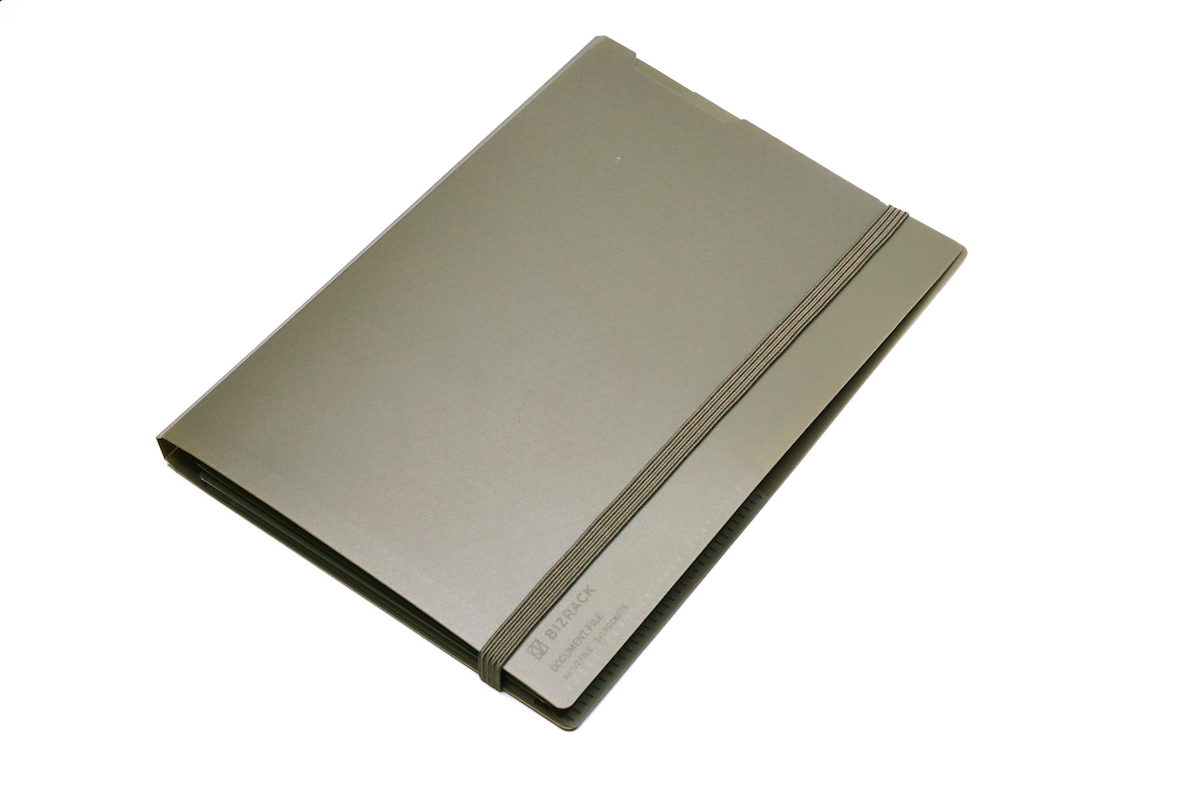 そういう感覚で運用するなら、「2つ折りドキュメントファイル<ビズラック>」はかなり優秀だ。A4サイズの書類ホルダーを、その名の通り2つ折り(A5サイズ)にして携行できる。つまりコンパクト化されるため、単純に持ち歩きやすくなるという話である。