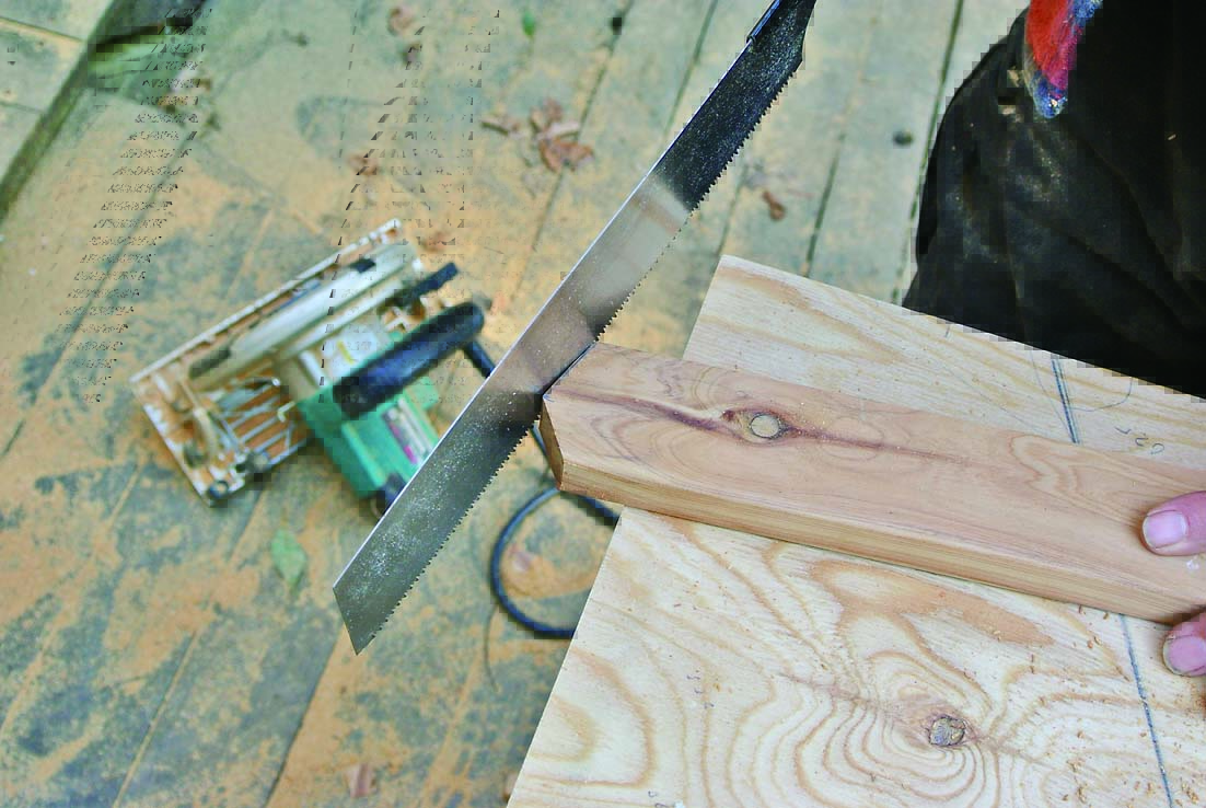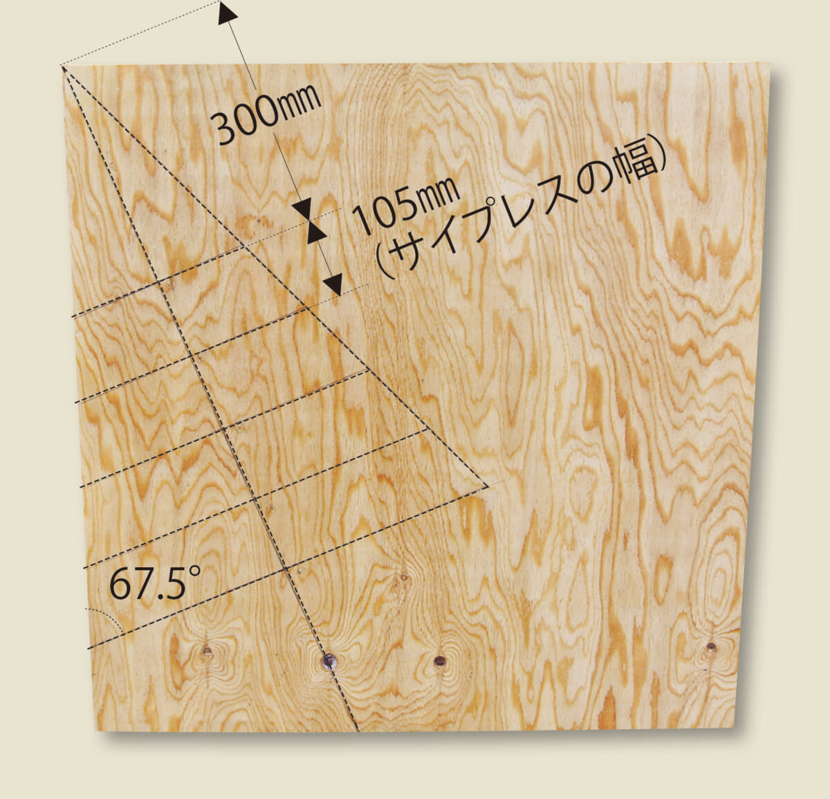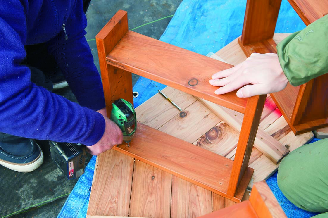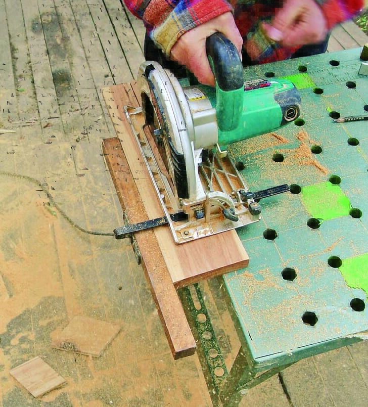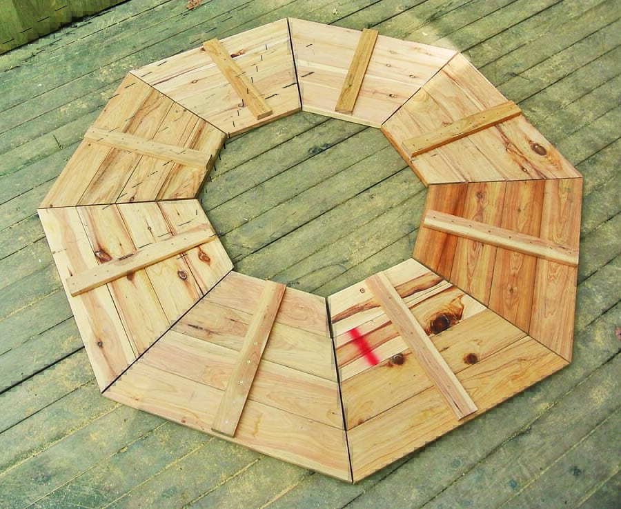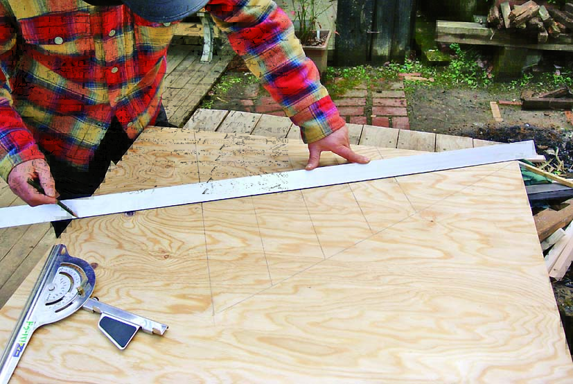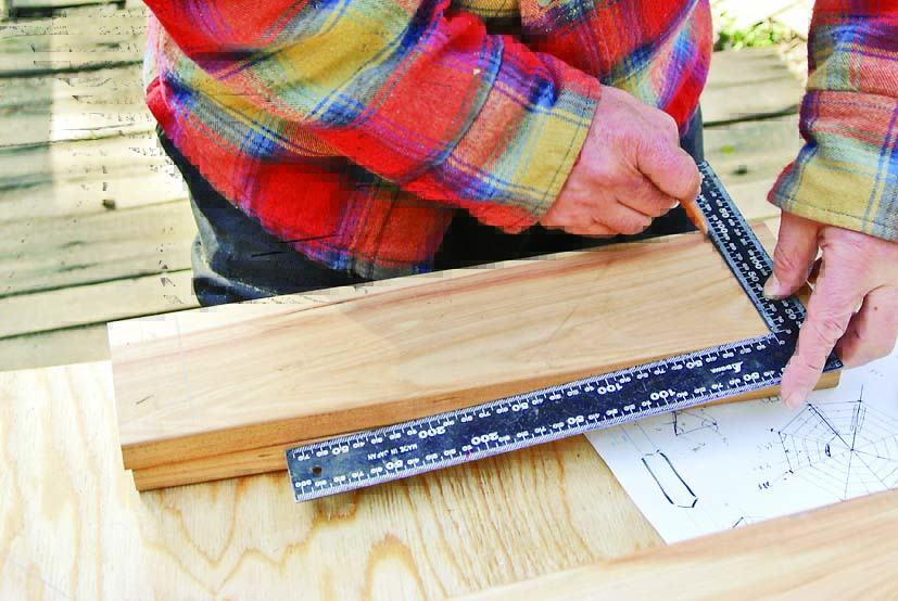 製作の一番のポイントは、角度定規と丸ノコで行なう「角度切り」。八角形なので67.5度の角度切りで材を大量にカットするのだが、少しでも狂うとうまく組めずに座板同士にすき間が生じてしまうといった問題がある。そこで今回は、細い板で座板のつなぎ目を隠すようにし、多少角度が狂っていても見た目にはわからないように設計。角度切りにあまり神経質になる必要はないのでぜひチャレンジしてほしい。