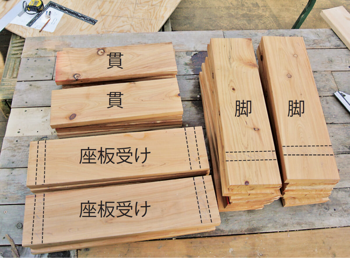 | サイプレスを割いた材(20×52.5) | 400 | 8 | 座板の桟 |