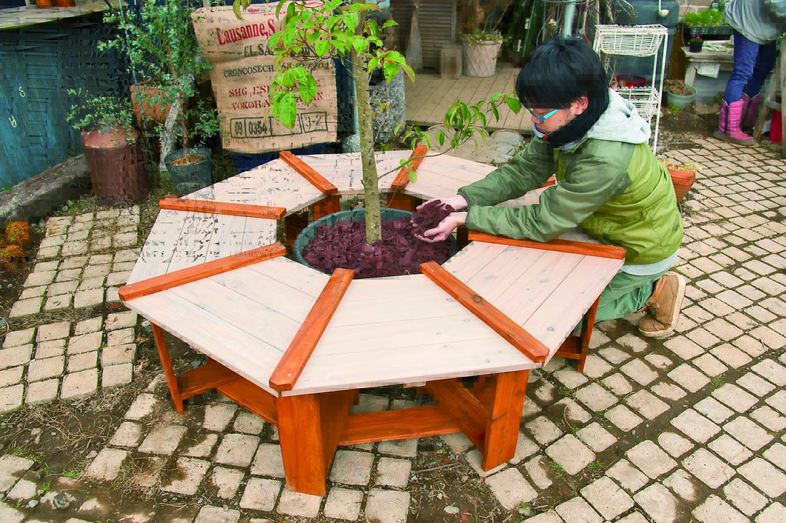 木を中心にしてぐるりと囲むように設置するベンチは、公園や街の広場などでもよく見かける定番のガーデンアイテムだ。木陰でお茶を楽しめたり、庭作りでの休憩所としても使えるので、庭に大きな木を植えているのであれば、その太さに合ったベンチをDIYしてみよう。ただ、円形となるとなかなかハードルが高くなるので、ここでは円形よりも手軽に作れる八角形のベンチを提案したい。