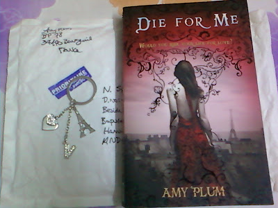 Today I am really Happy and super excited because i received a copy of DIE FOR ME by AMY PLUM and a cute “V” key chain in my mailbox while i am least expecting them(this is the first time i won and received a physical copy of a book!!).I received both of them as i won “Die For Me Grand Prize” in a giveaway hosted by Lisa at A Life Bound By Books.