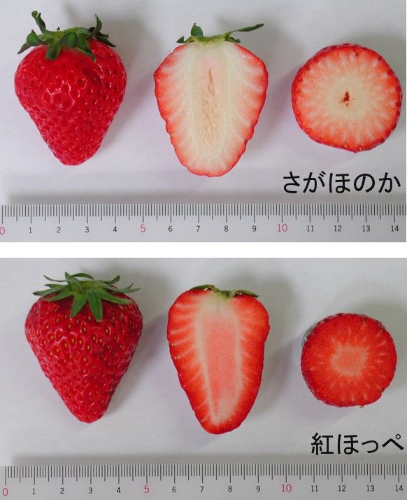 糖度は‘さがほのか’で9.5度、‘紅ほっぺ’で8.2度でした。ただ、これは品種特性なのか、たまたま果実の出来や熟度が影響したのかわかりません。