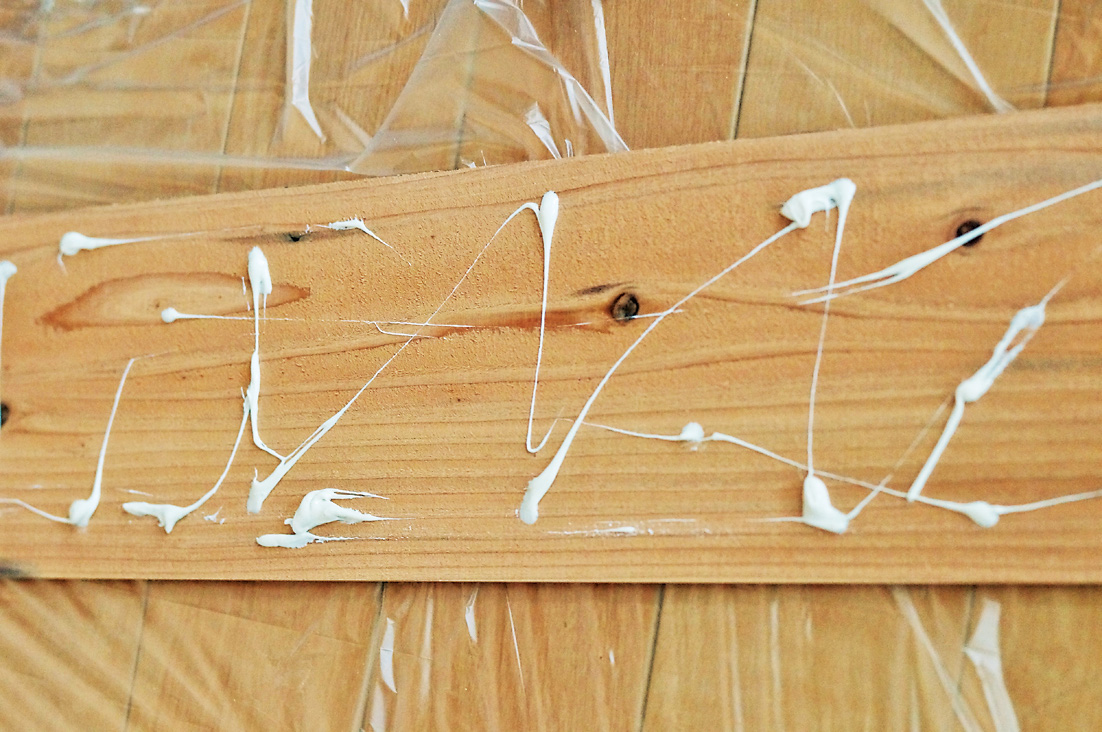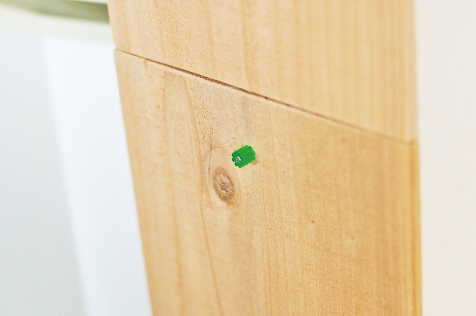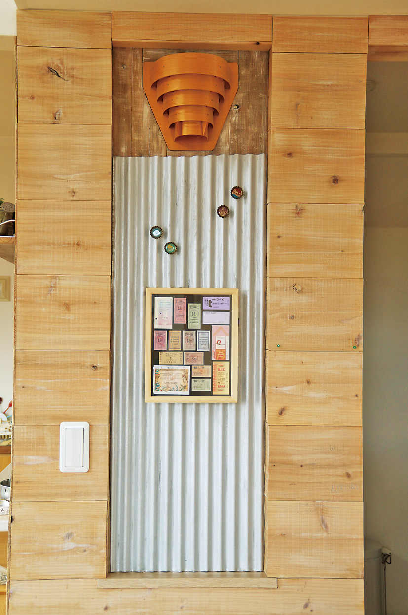 資材は安価で売られていた仕掛かり品と呼ばれる節穴などの処理がされていない厚さ5mmの板材。壁材に最適で見た目のジャンクな雰囲気にもひかれたそう。