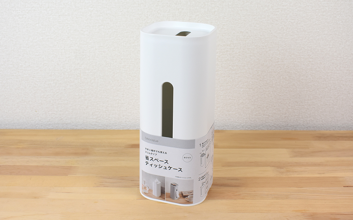 リビングなどで意外とスペースを使うボックスティッシュ。横幅がある割に高さはなく、なんだか周囲の空間をムダにしているような気がしてしまいますよね。そこで今回注目したのは、ニトリで販売中の「省スペースティッシュケース シュトレ(WH)」(814円/税込)という商品。“省スペース”というフレーズに惹かれて、さっそく購入してみました。