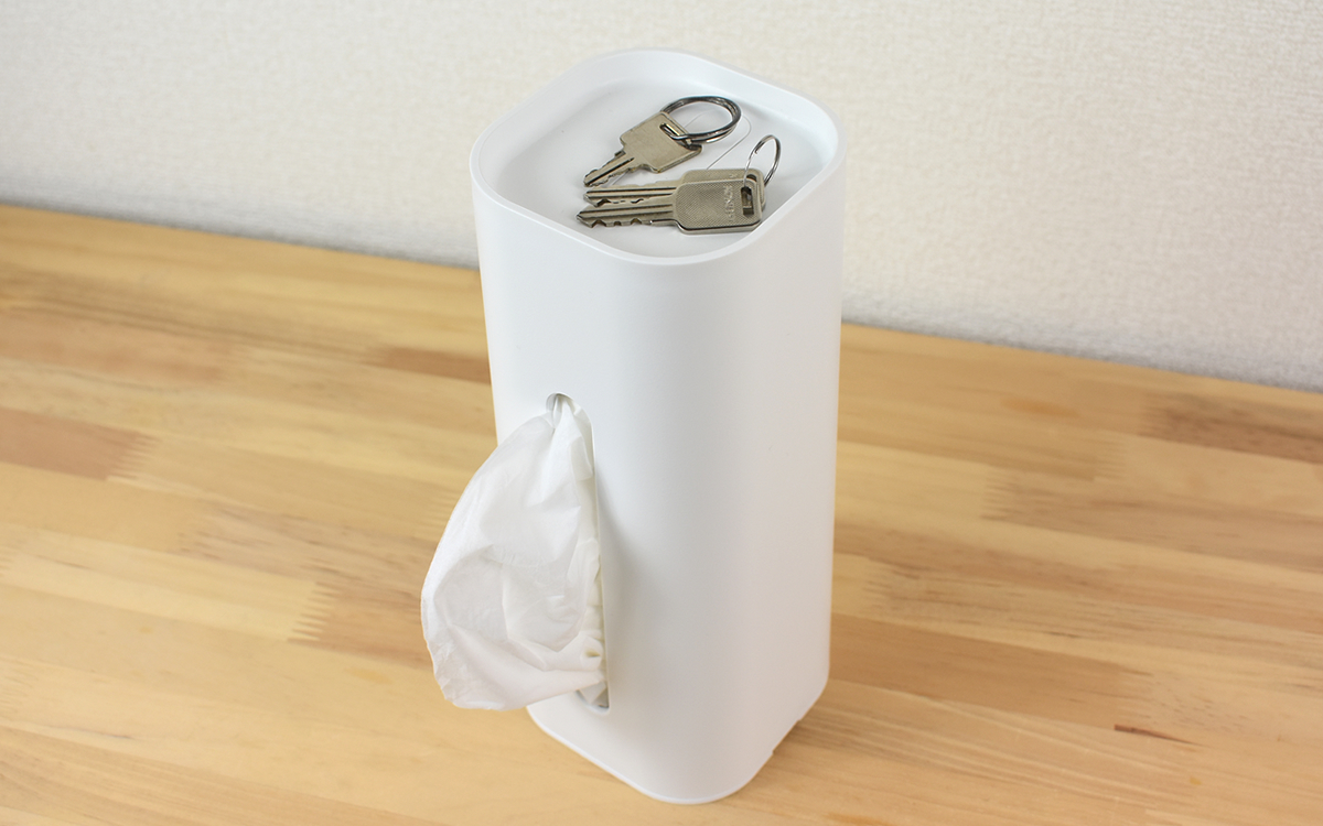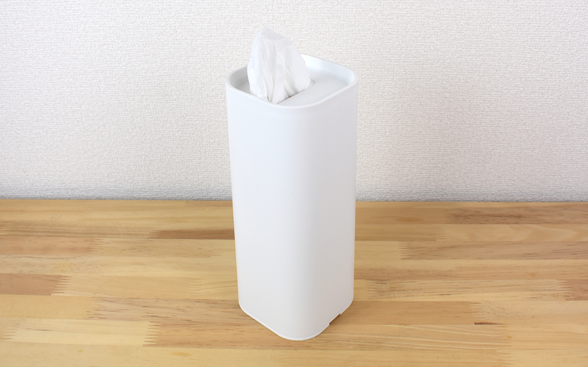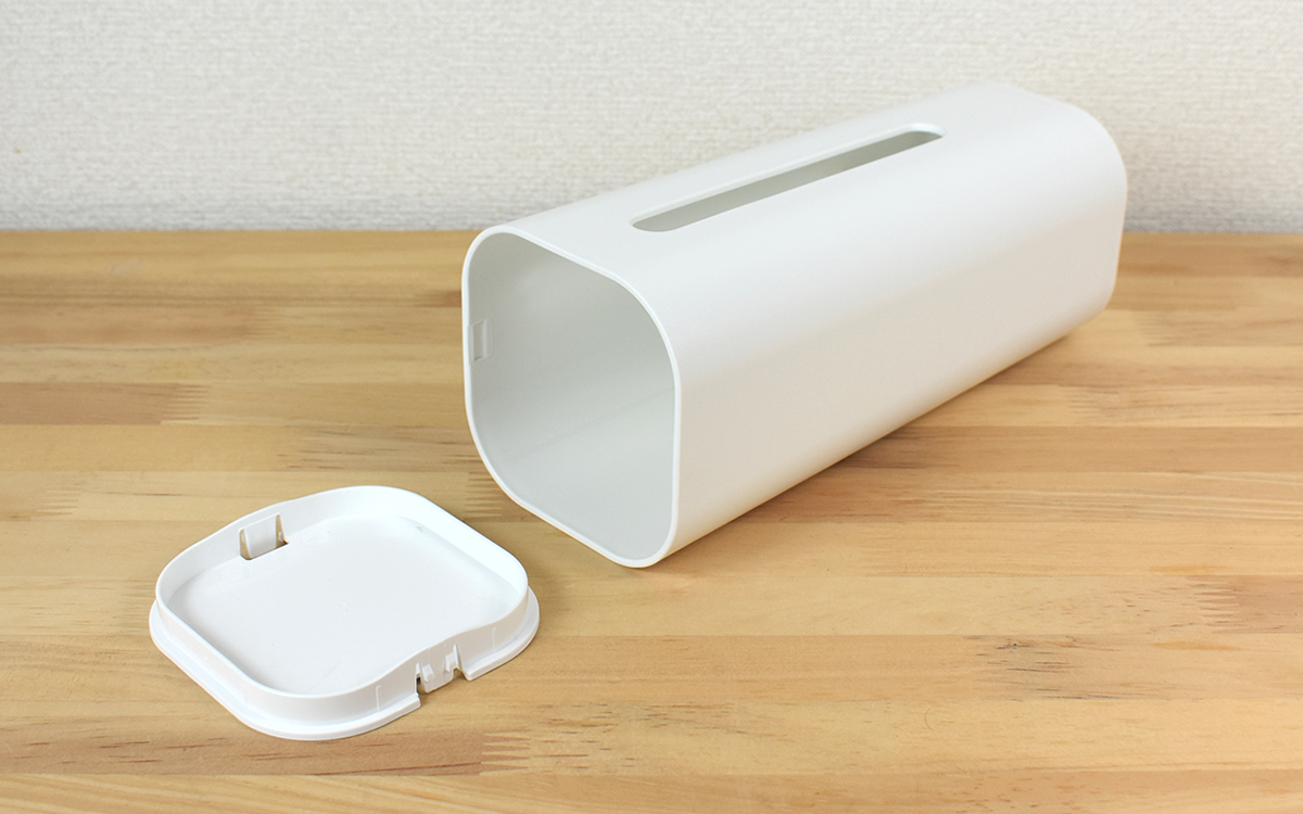 ちなみに付属の上ふたを上面の口に取りつければ、小物の置き場所にぴったりなトレーに早変わり。少しでもスペースを有効活用したいという人には、側面からティッシュを取り出すようにするのがオススメです。