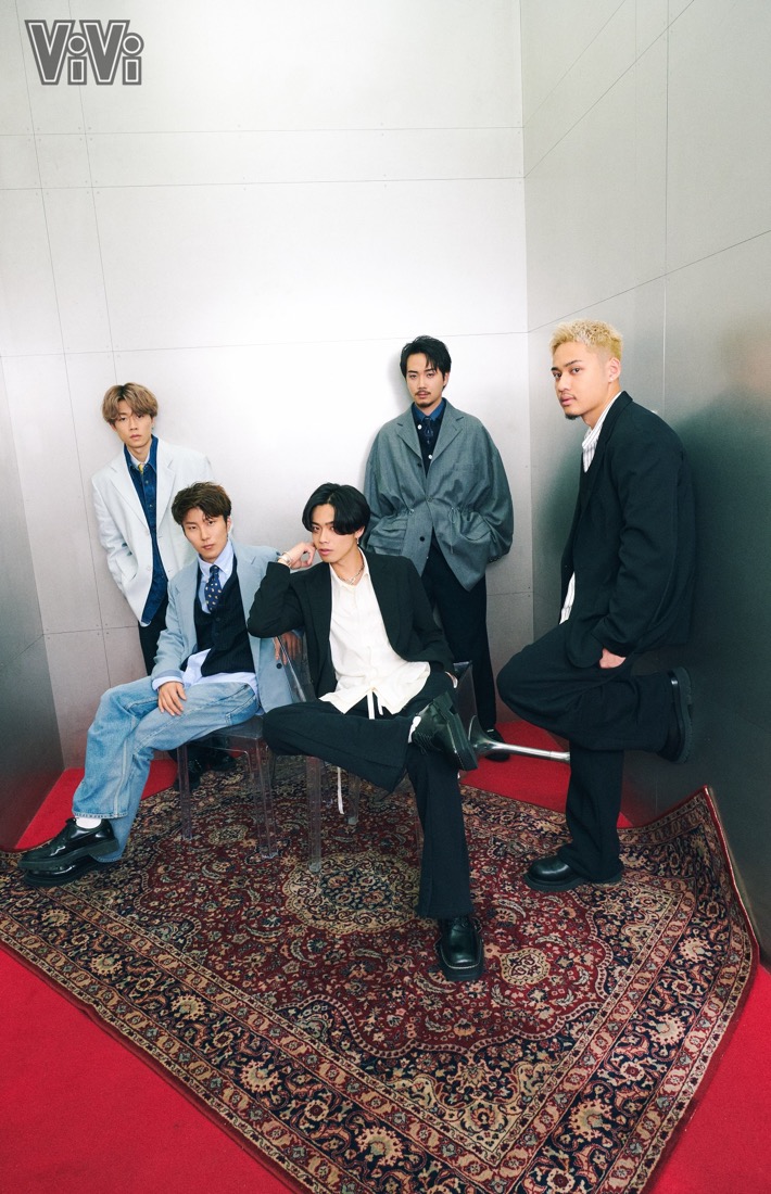 撮影中は、特別ゲスト(誌面をお楽しみに!!)を全員で目を細めながら愛でたり、メンバーの誰かがインタビューを受けているとふらっと参加して横から茶化したり、いつの間にか妄想恋愛トークに発展して盛り上がったりする場面も。2パターンの衣装でキメた6人のビジュアルも必見だ。