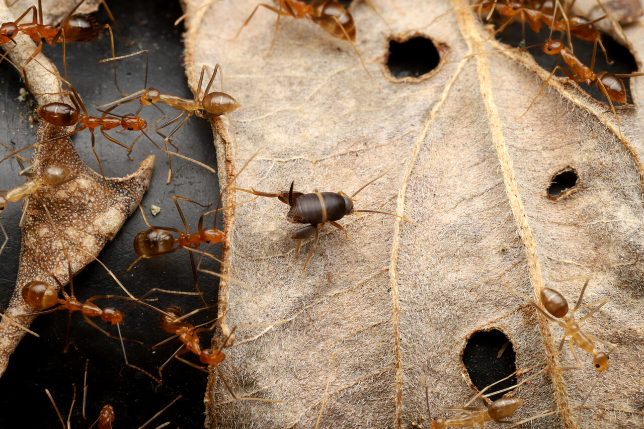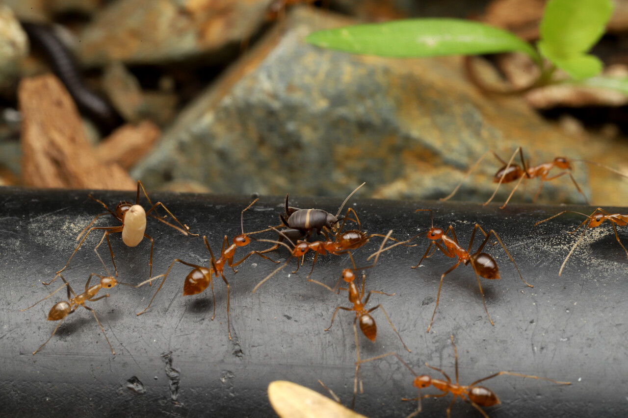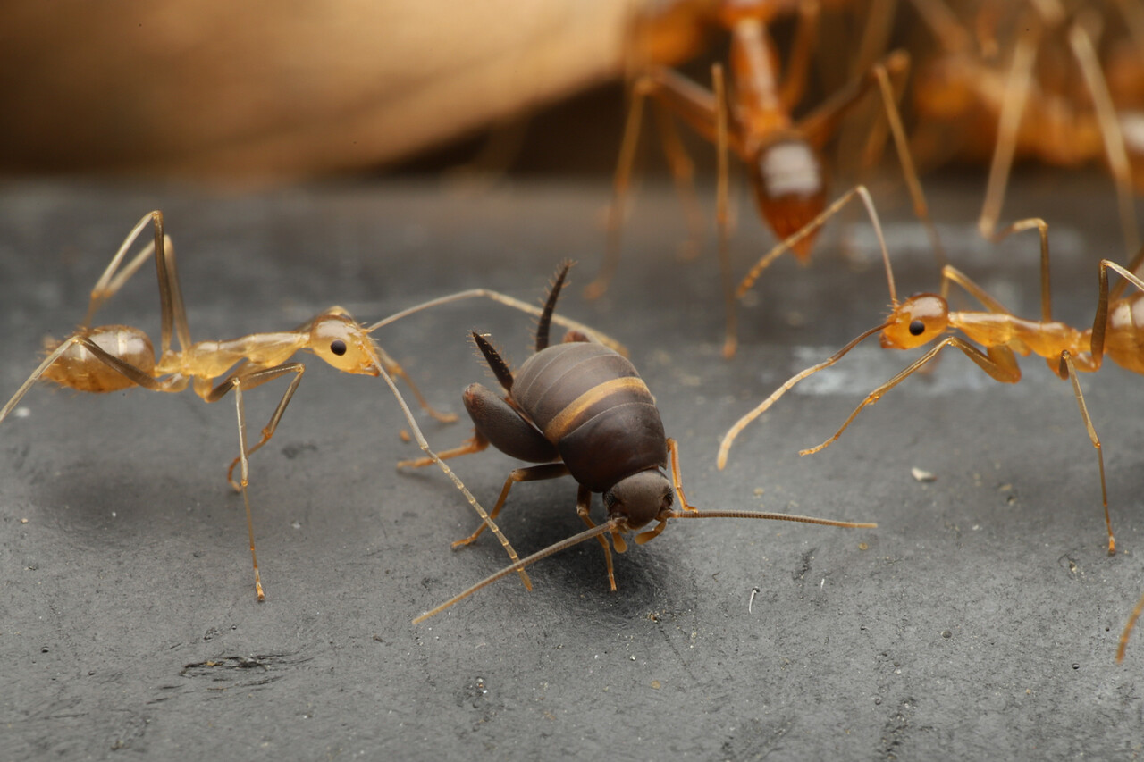 アシナガキアリは頻繁に引っ越しをするので、一緒に暮らす好蟻性生物たちも大変です。
