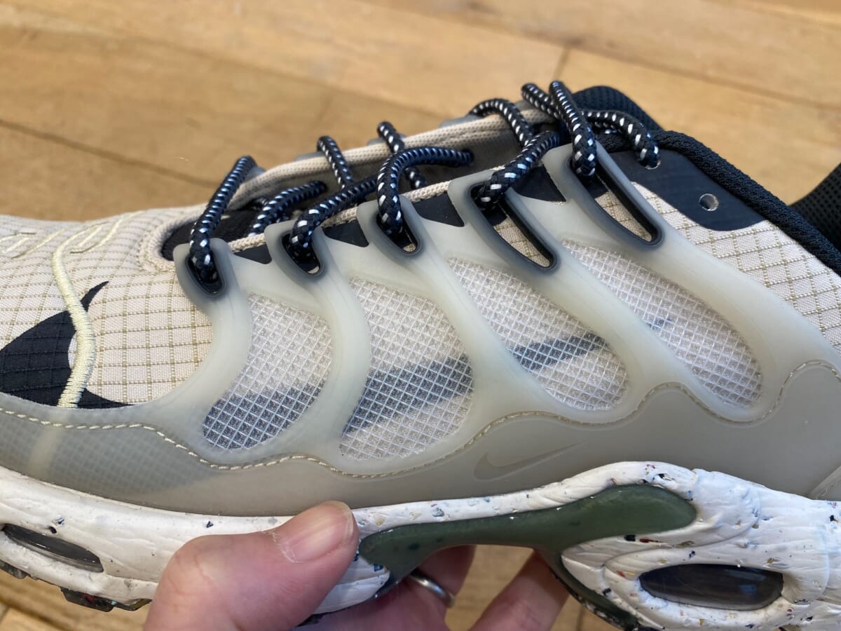 そんな大ブームにも陰りが出てきた、1998年に登場した「ナイキ エア マックス プラス」。“マップラ”の愛称で、スニーカー好きの間では人気のモデルです。今シーズン、同モデルにサステナブル仕様の「ナイキ エアマックス テラスケープ プラス」が加わるとの情報をゲット! コレは試さずにはいられません。