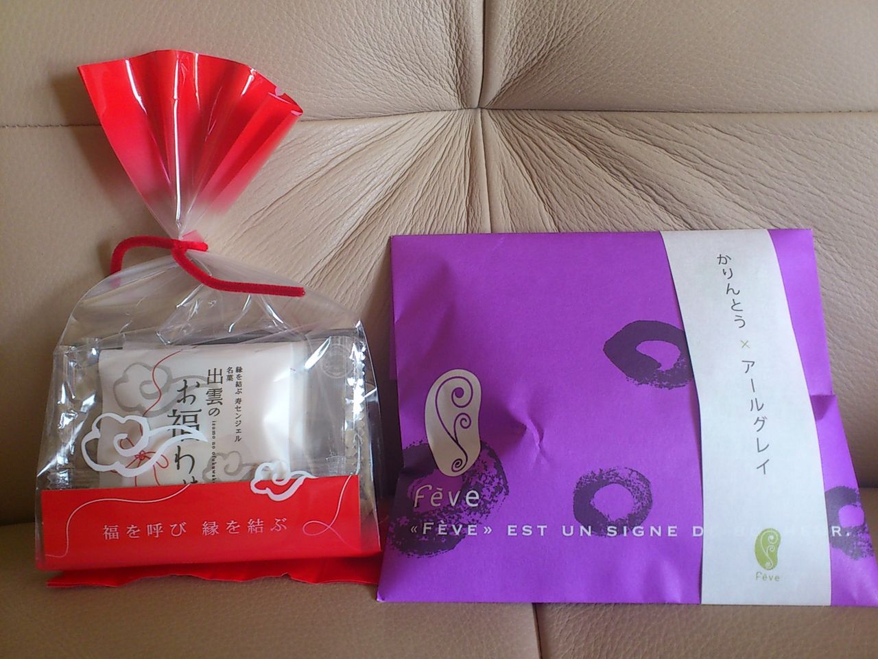 左はうさなえちゃんの出雲出張土産、右はやよさんが買ってきてくれた担当カラーの包みのかりんとう![]()