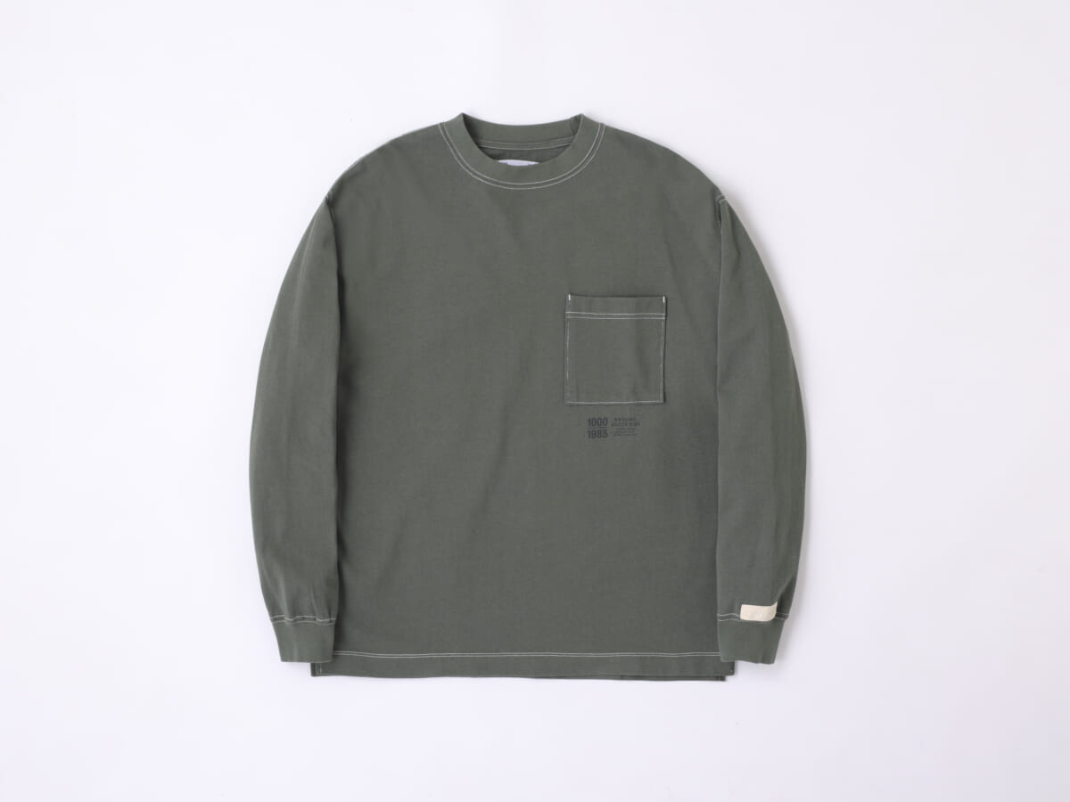 生地は、ヴィンテージスウェットを再現した23番手のオープンエンドヤーンで13ozのヘビーウェイト裏毛を編んで裏起毛。ノスタルジックな風合いと、ラフ&タフな表情に仕上げています。着心地は軽く、心地よいのが特徴です。