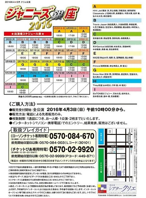 ジャニーズ銀座2016、クリエが決まりましたね~![]()