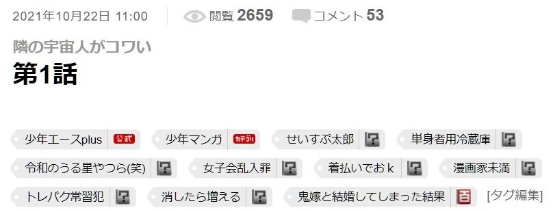 阿東里枝先生の『隣の宇宙人がコワい』、ニコニコ漫画でタグ荒らしをされる