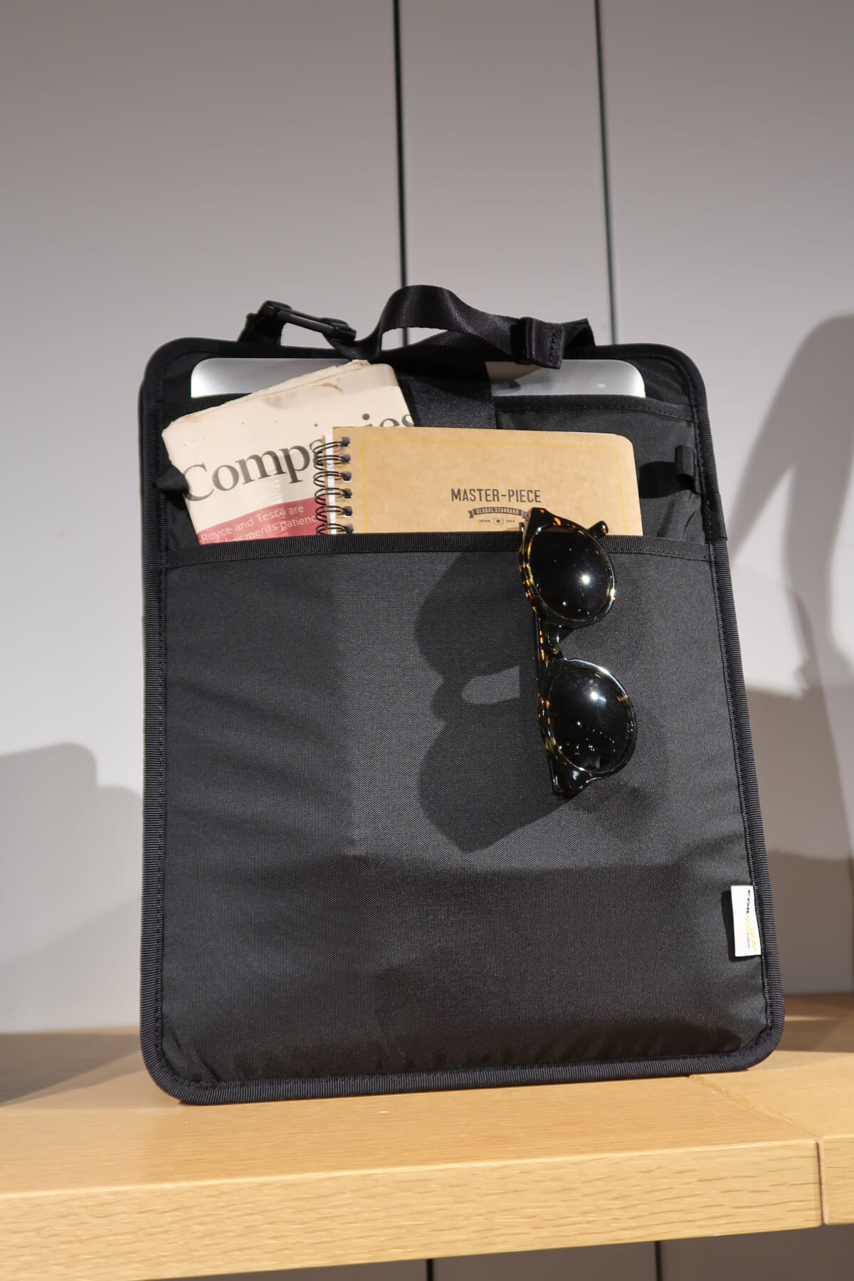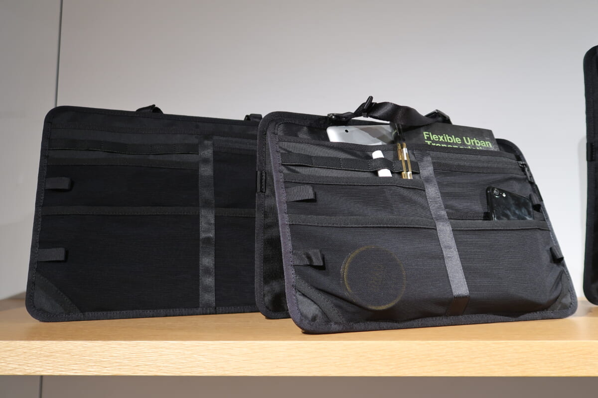 今年の春夏シーズンに登場した“アルファ ワークパッド”が単品でも購入できるようになりました。PCやタブレット、周辺アクセサリーを収納できるポケットが備わっているため、普段とは違う場所に一式を持ち運びやすく、芯材と背面のスタンドによって自立するので、外で作業する際にパーテーションの役割も果たします。