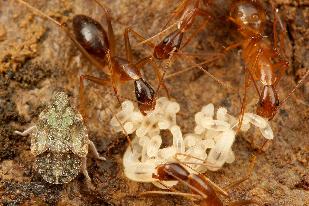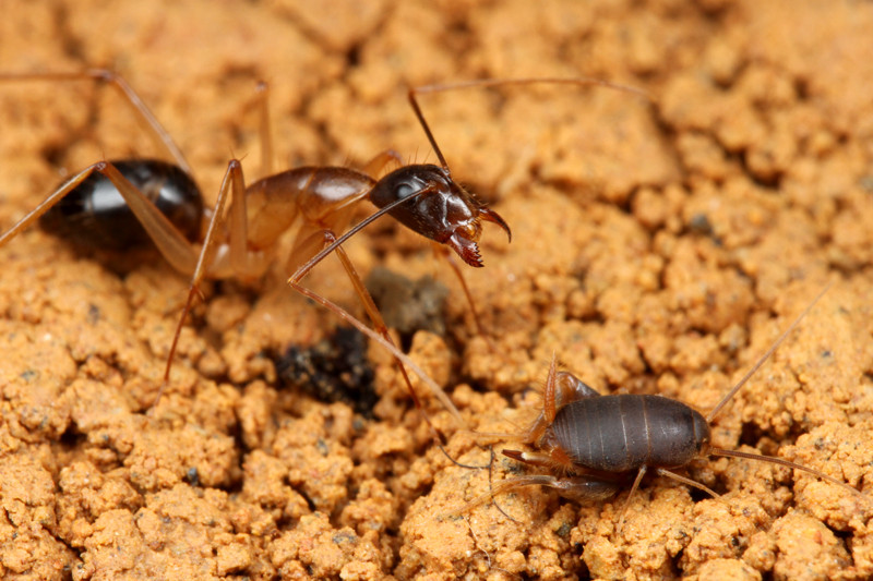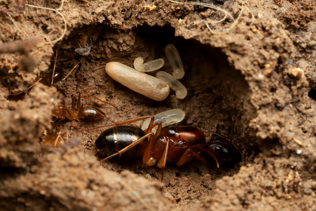 沖縄の森で土の中に巣を作るケブカアメイロオオアリ。