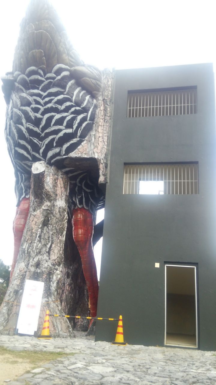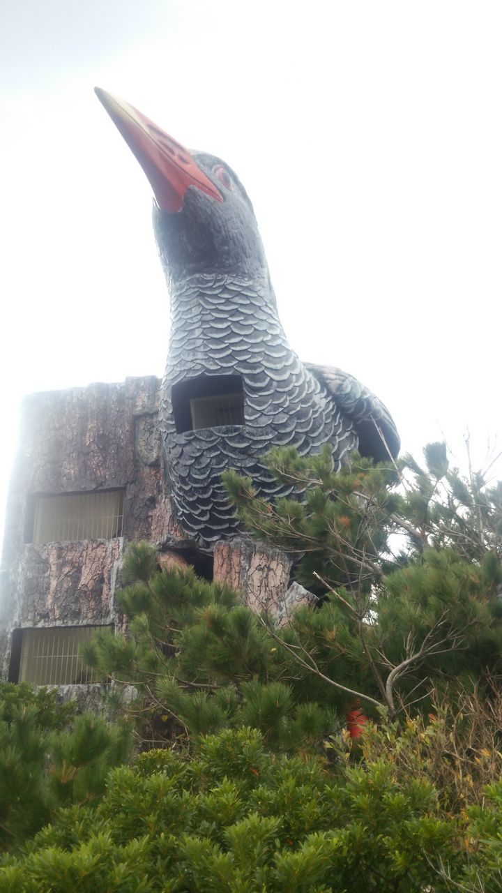 怪鳥に気取られぬよう階段を適当に登っていく… 怪鳥は居た!! 怪鳥のケツだ! 三角木馬にまたがってる風だ!! そしてこれが幻の怪鳥ヤンバルクイナだった! ヤンバルクイナ展望台に登って見る景色は辺戸岬から見えた景色とほぼ一緒だった。