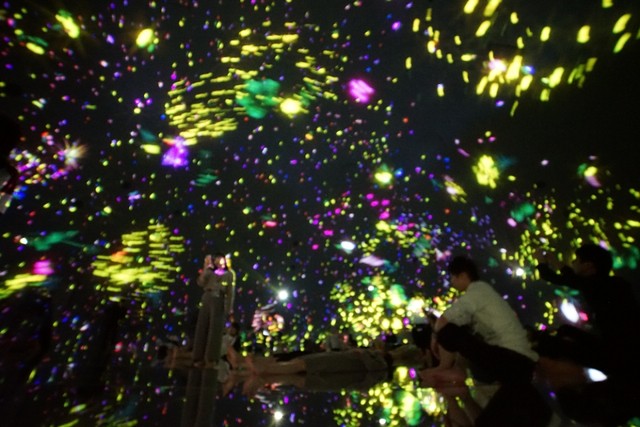 お台場チームラボボーダレス行ったら 予約のみしか見れなかったので 豊洲に行ったら30分待ちぐらいでゆっくりはいれた 綺麗な写真取りたかったけど ここはいってこそわかる良さがある 関西にも早くつくってほしい