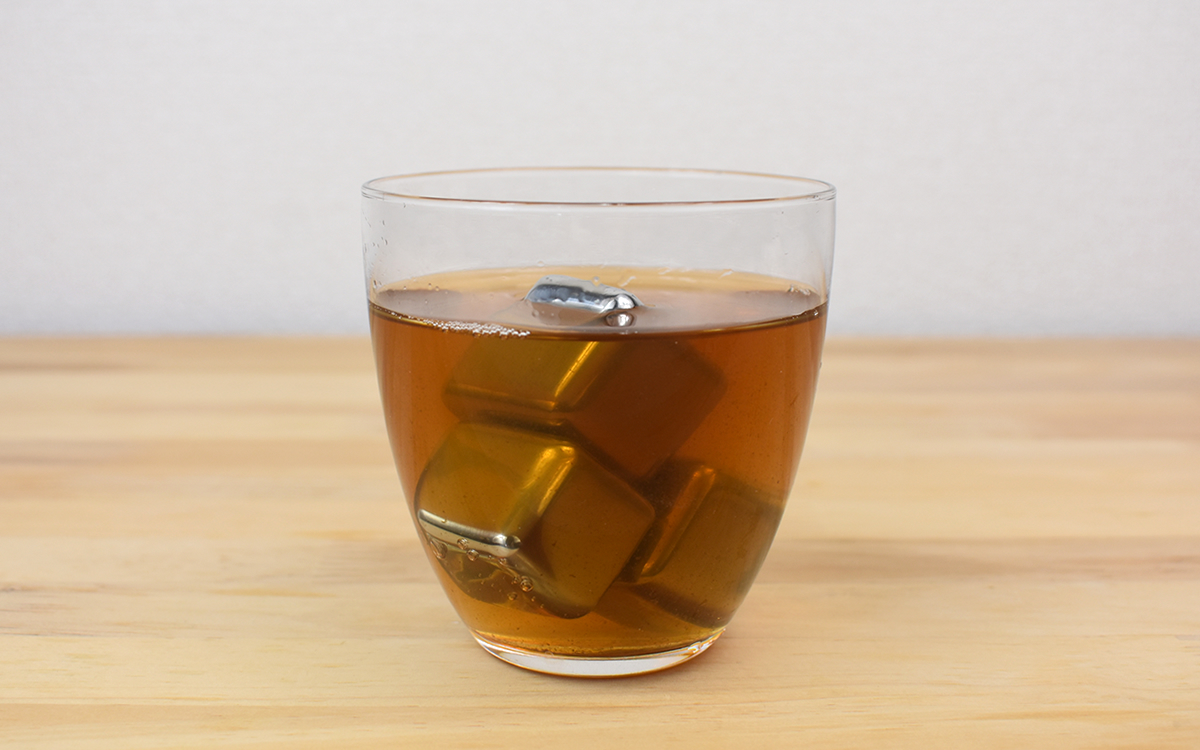ウイスキーに使用する場合は、キューブの高さまでウイスキーを注ぐのがポイント。5分間そのままにしておけば、ほどよい冷たさで飲めるようになります。今回お茶を淹れてキューブを投入しているように、ウイスキー以外の飲み物に使ってもOK。ちなみに“氷の代わり”になるといっても、氷を入れた時ほど冷えるわけではないのでご注意を。