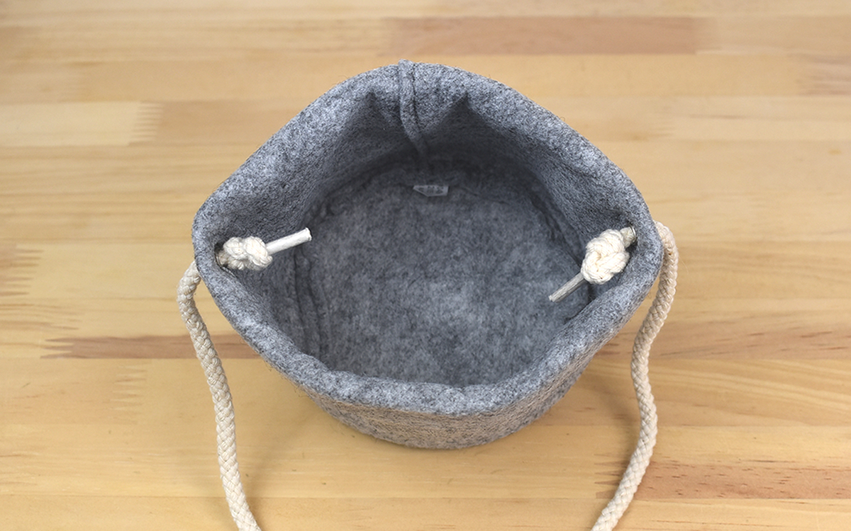 ポリエステル100%のカバー本体は、見た目だけでなくフェルトの触り心地もGOOD。綿でできた紐を含め、落ち着いたトーンの色合いが室内の雰囲気にマッチしてくれます。
