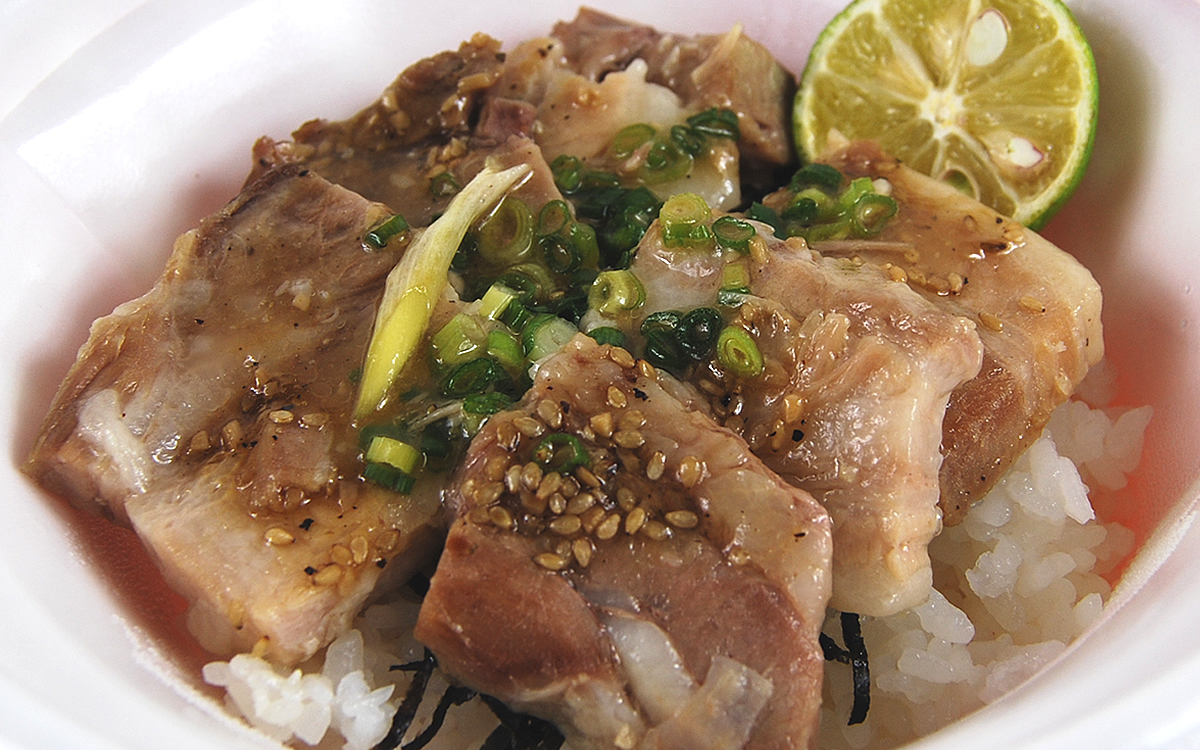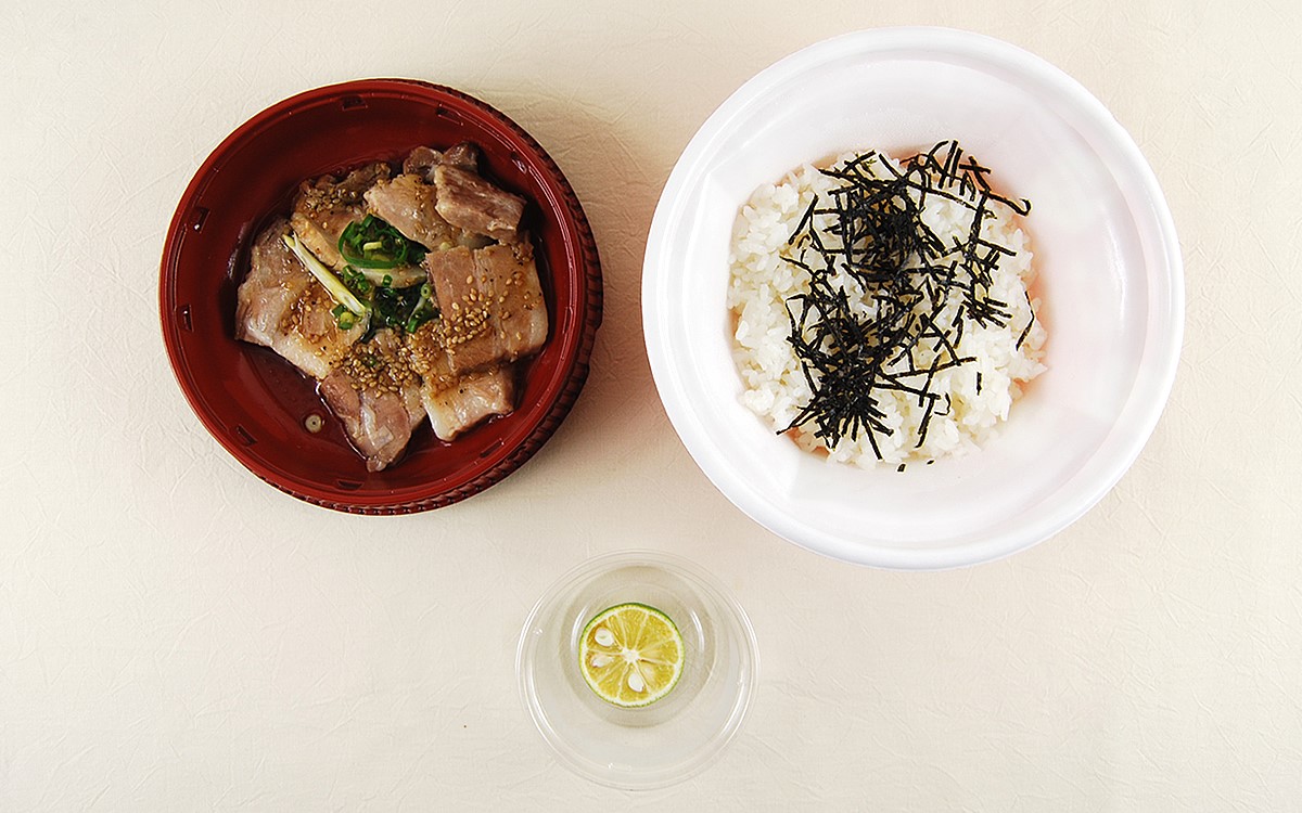 ご飯の上にトッピングするのは、生姜や青ネギなどの薬味と一緒に3時間以上かけて煮こんだ豚バラ肉。また別で添えてある徳島県産すだちと角煮の相性も気になるところです。