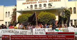 Παράσταση διαμαρτυρίας πραγματοποιήθηκε στην Π.Ε Κορινθίας από κατοίκους ,φορείς και συλλόγους από Σχινος, Βαμβακιές, Μαυρολίμνη, Στραβά.Στη συνέχεια ακολούθησε διάλογος προκειμένου να δωθούν άμεσα οι απαραίτητες λύσεις που θα βοηθήσουν και στην αντιπλυμμυρική θωράκιση των περιοχών.