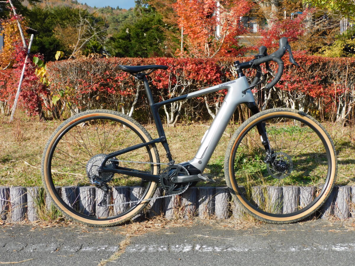 キャノンデールのグラベルロードとして唯一無二の存在感を発揮するe-Bike。軽量かつ高剛性を誇るカーボン製フレームにボッシュ製のパフォーマンスラインCXを搭載。特徴的なレフティ―フォークは30mmのトラベル量を誇り悪路の走破に貢献する。